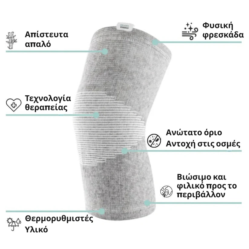 Το μπαμπού ρυθμίζει φυσικά τη θερμοκρασία: διατηρεί το γόνατο ζεστό όταν κάνει κρύο και επιτρέπει στο δέρμα να αναπνέει όταν έχει ζέστη.
